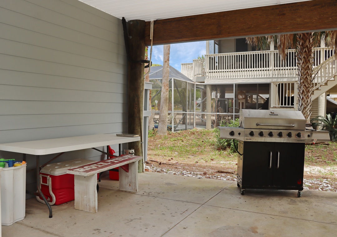 The charcoal grill is open air/park style, so it did work for oysters and hamburgers, just takes extra time